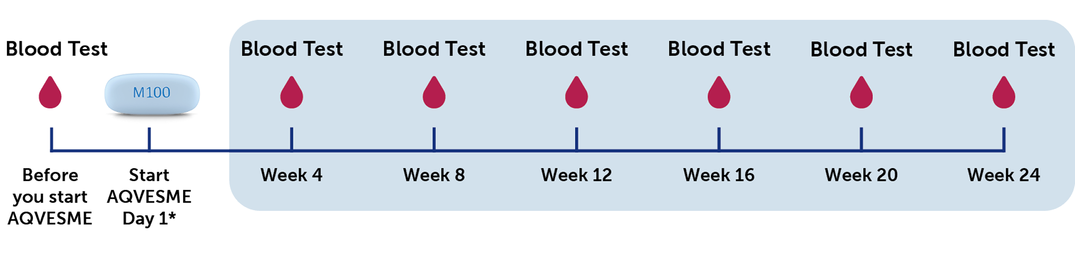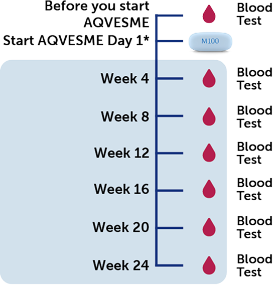 Your doctor will check your liver with a blood test before you start AQVESME, and then every 4 weeks for the first 24 weeks of treatment.