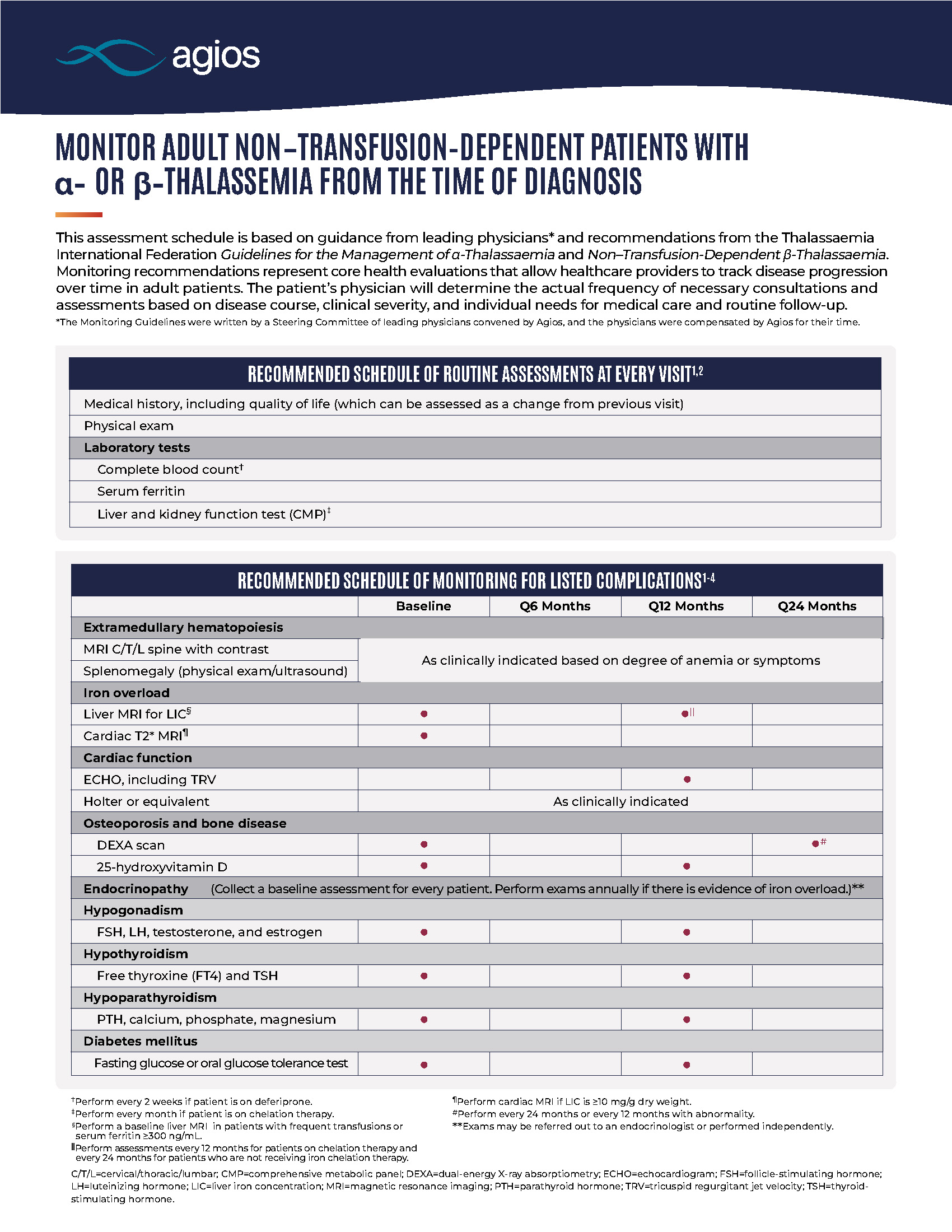 Symptoms and signs of early liver injury may mimic those of thalassemia. Advise patients to report new or worsening symptoms of loss of appetite, nausea, right-upper-quadrant abdominal pain, vomiting, scleral icterus, jaundice, or dark urine while on AQVESME treatment.
